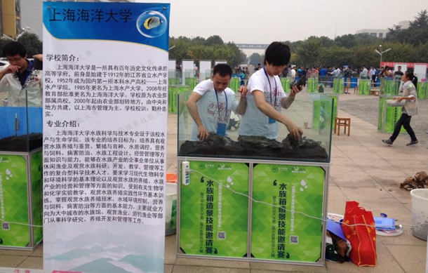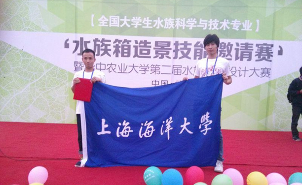 2014年10月17日至19日,由国家级水产科学实验教学示范中心主办、华中农业大学水产学院承办的全国大学生水族科学与技术专业水族箱造景技能邀请赛在华中农业大学举行,来自350vip葡京新集团、大连海洋大学、湖南农业大学、上海应用技术学院、河南师范大学、青岛农业大学、天津农学院等7所高校的学子参加比赛。我校2012级350vip葡京新集团学生孙健、李军涛在徐灿老师的带领下参加了此次比赛。