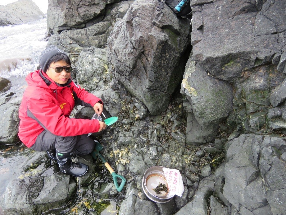 于克锋副教授正在长城站周边海域潮间带采集大型海藻样品