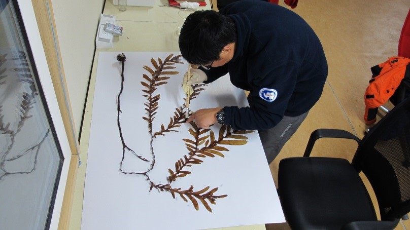 于克锋副教授正在长城站实验室制作大型海藻标本