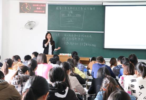 2015年11月3日下午13:00,在2211教室,生命学院校友刘林林为100多名本科生和研究生做了一场职业发展教育讲座——《生物企业求职技巧辅导》。