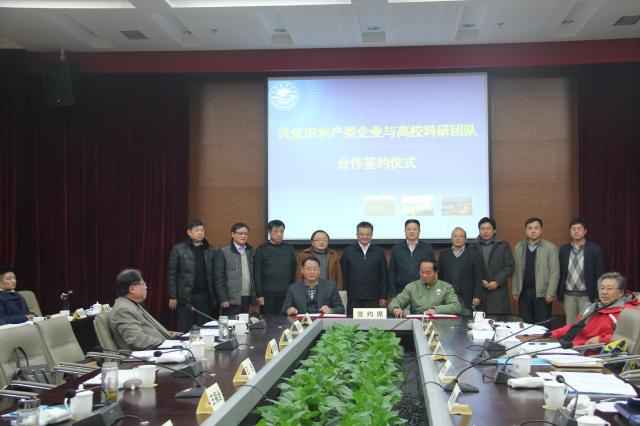 兴化市水产类企业与350vip葡京新集团科研团队签署科技合作协议书