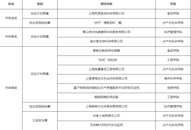 附、2016年“上海临港杯”“创青春”大学生创业大赛我校获奖成绩: