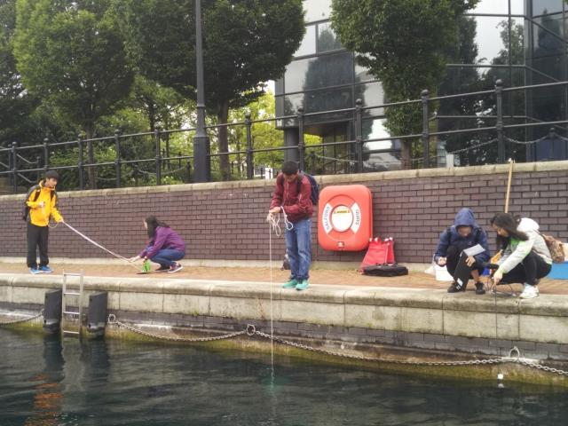 游学学生在曼彻斯特市郊湖区采样