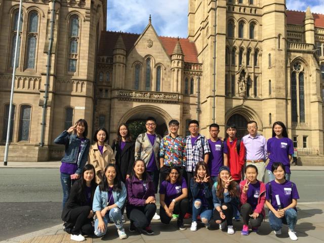 参加游学项目的师生在曼彻斯特大学正门合影