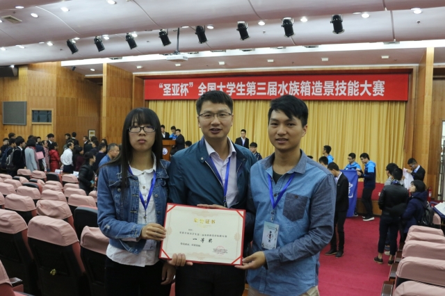 10月23日,“圣亚杯”全国大学生第三届水族箱造景技能大赛在大连海洋大学落下帷幕。由我校徐灿、金曙刚(外聘专家)老师指导,350vip葡京新集团梁炳辉、王童、问高生同学制作的作品《静谧》表现优异,在全国参赛的110支作品中脱颖而出,和华中农业大学作品《崖之根》、宁波大学《青山连碧》、西南大学作品《青山涧》、大连海洋大学作品《梦幻梯田》共同荣获本届赛事一等奖。