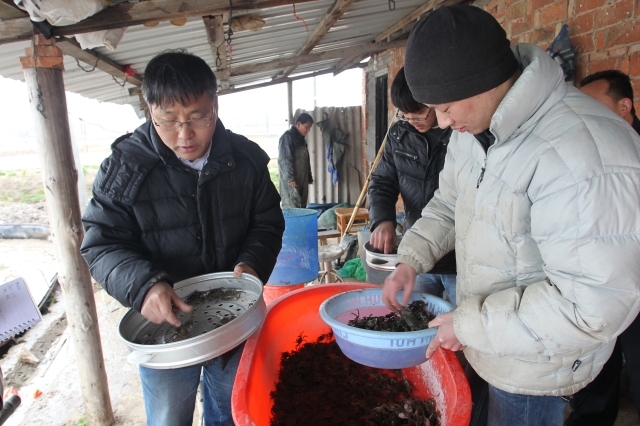 为确保各项具体工作顺利开展,学校与苗栗县政府、苗栗县大闸蟹发展协会开展产学研合作,形成了围绕大闸蟹养殖的高效率运作的“2+2”产学研模式:大陆基地组依托我校崇明基地,着重向台湾方面提供种源清晰、质量优秀、规格适中的蟹种;台湾技术研发组以王春副教授为主,长期驻台,为苗栗县养殖示范户量身定做大闸蟹养殖技术方案;苗栗县政府成立协作组,通过“搭台”、“铺路”、“辅导”、“跟进”、“巡考”等形式,以品尝大闸蟹助推其休闲旅游业和精致农业创新;苗栗县大闸蟹发展协会组织发展会员,配合县政府、技术研发组做好科技服务,统一市场品牌,开拓市场需求。