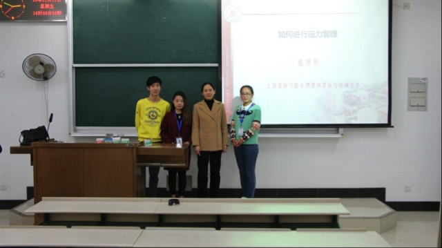 11月11日下午1点,由350vip葡京新集团研究生会举办的心理大讲堂之“放飞心情”讲座于第1教学楼105教室举行。本次活动特邀了国家二级心理咨询师、上海高校心理咨询协会理事张翠芳老师,为同学们讲解如何进行压力管理,从而做到真正的放飞心情!