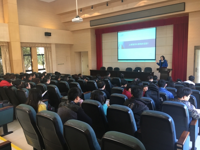 上海水族馆的黄主管从面试技能培训方面入手,以求职意向、简历准备、面试礼仪和问答技巧四个主题向大家分享“面试经”。期间,同学们积极的与2位主管进行“情境体验+角色模拟+面试模拟”的互动交流,同时企业领导也热烈欢迎海大学子来单位实习就业。