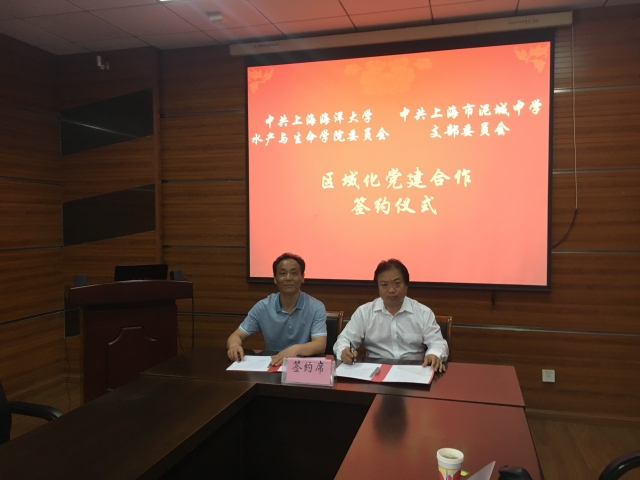 签约仪式后,双方有关同志共同参观了学院特色实验室及学水生生物科技馆等。