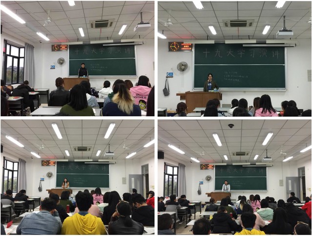 通过本次学习十九大精神的专题演讲,同学们不仅提升了自身演讲素质,而且更加全面深刻地了解了我国的发展状态和新时代发展背景下取得的成就。同时,我们也明白了每一位大学生都将肩负更加庄严而神圣的历史使命,因此,时代不允许懈怠,我们自己也决不能停下向前努力、提升自己的步伐。在新的时代蓝图下,同学们一定会坚定信念,脚踏实地,为夺取新时代中国特色社会主义伟大胜利、实现中华民族伟大复兴的中国梦而努力奋斗!