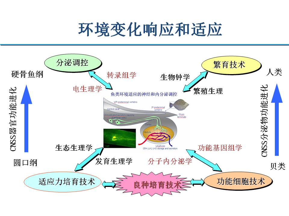 主要利用多学科整合生理学方法,从分子、细胞、个体多层次阐述生物生理活动,研究“环境变化带来的问题”。研究水生动物对多重环境变化的适应性、环境因子对水生动物生殖内分泌的影响和生殖调控,解析生物响应和适应环境变化的机制及环境适应力的调控机制,揭示水产优良品系响应环境胁迫的分子调控网络,完善环境适应力和抗逆良种培育理论,并应用于适应力强的良种培育和耐盐碱品种选育及生态环境评估和保护。