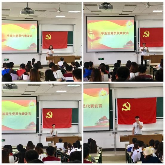 刘乐丹、赵爽、王雅昱、王鑫等四位同志作为毕业生党员代表发言,他们各自分享了自己在读研期间的感悟,给在场各位师弟师妹们传授了宝贵的经验。