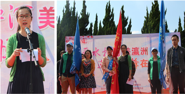 开幕式上,院党委副书记林海悦发表讲话,她首先介绍了葡京新集团官网与崇明区农水所开展的党支部结对共建活动,肯定了双方达成的合作共识;并且感谢崇明水务局对葡京新集团官网社会实践“金山银山就是绿水青山-千湖调查”项目的大力支持。与此同时,此次活动作为葡京新集团官网“主题团日”的重点、亮点,她对志愿者也提出三点要求与希望,相信河道洁净会因青年人而活力四射,河水清清会因青年人而绚丽多彩。随后葡京新集团官网2016级研究生孙炳艳同学作为志愿者代表进行宣誓和授旗。