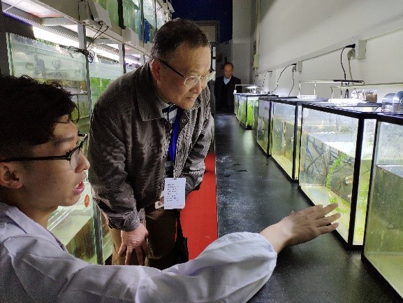 11月12日傍晚,教育部本科教育教学审核评估专家组成员张家钰(上海建桥学院原副校长)走访我校水产科学国家级实验教学示范中心大学生创新实践开放平台,350vip葡京新集团院长谭洪新、中心办公室主任朱正国、本科生辅导员徐灿、教师刘志伟等人陪同专家考察并对创新实践开放平台运行情况作了详细介绍。