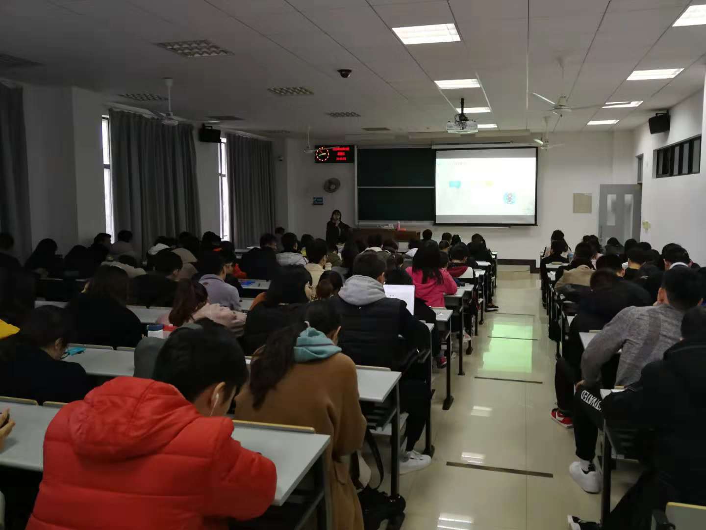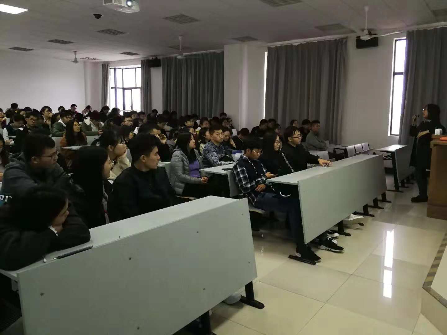 在讲座开始前,秦老师向同学们提出三个问题:对自己专业的喜欢吗?对三年毕业以后的生活有信心吗?以及最近是否感觉到压力?让同学们根据自身情况作出回答,从而对在座的同学们最近的心理状态有了大致了解。秦老师之前也接触过一些研究生同学,所以对同学们的压力来源有一些了解。