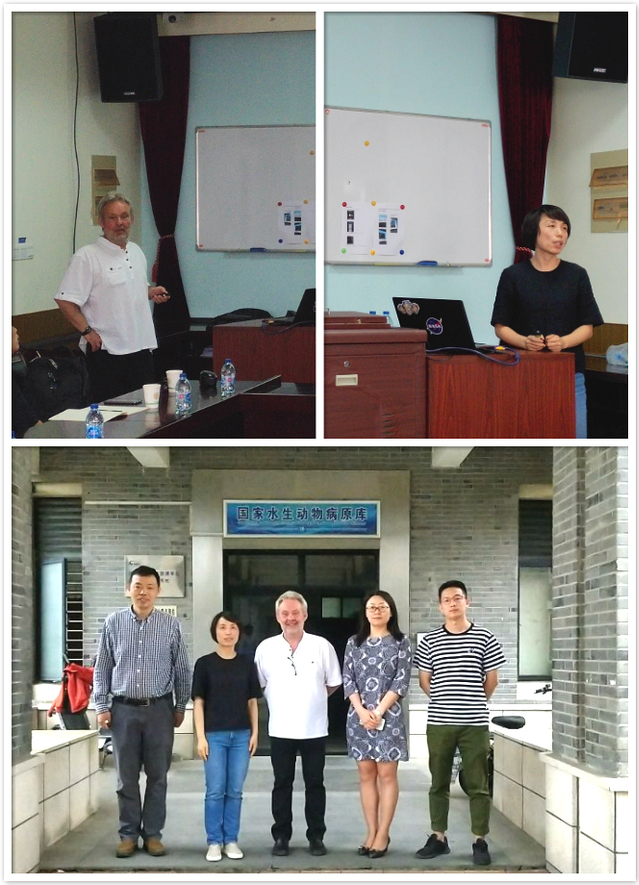 6月12日至6月13日,德国动物健康研究院(Federal Research Institute for Animal Health, FLI)Sven M Bergmann教授和中国水产科学研究院珠江水产研究所王庆研究员来我校水生动物病原库学术交流,并为水生动物医学专业师生作学术报告,报告会由吕利群教授主持。