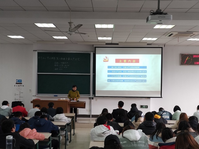 为深入贯彻落实习近平总书记重要讲话精神、学习贯彻党的十九届四中全会精神,2019年11月26日,350vip葡京新集团举办全面从严治党专题报告暨党的十九届四中全会精神主题宣讲,邀请350vip葡京新集团十九届四中全会精神宣讲团成员、校党委副书记、纪委书记何雅为全体学生作报告。