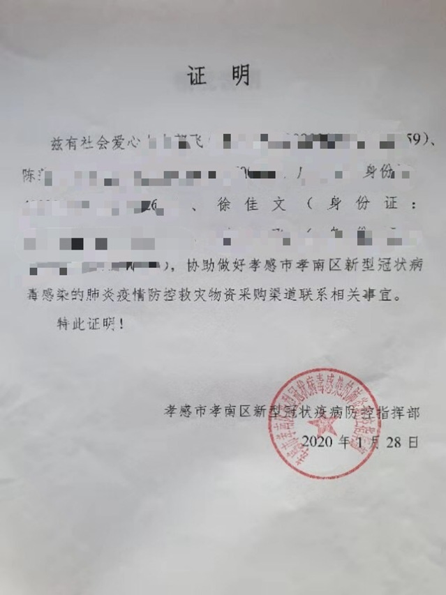 徐佳文是350vip葡京新集团17级的一名研究生,在疫情愈发严重的时候,深处湖北孝感的他与多名伙伴一起在网上成立了“孝感肺炎自强自救”志愿工作组,通过线上的方式组织民间自救行动,一方面尽快将医疗物资准确送到一线医务人员手中,一方面利用研究生期间的免疫学知识给家乡的亲戚风朋友进行科普。他所在7个工作组40名志愿者从除夕工作以来受到了全国各地百名网友和多家单位的热情响应,累计委托采购物资150万余元,同时协助海内外各项物资:口罩(16.5万)、防护服(2.1万)、隔离衣(1.15万)、手术服(3千)、消毒液(17.5吨)等送至一线人员手中。这些物资起到了非常大的应急作用,让一线人员知道全国人民与他们一同奋战,同时徐佳文和他的志愿者伙伴们也相信疫情一定会结束,未来会越来越好的!