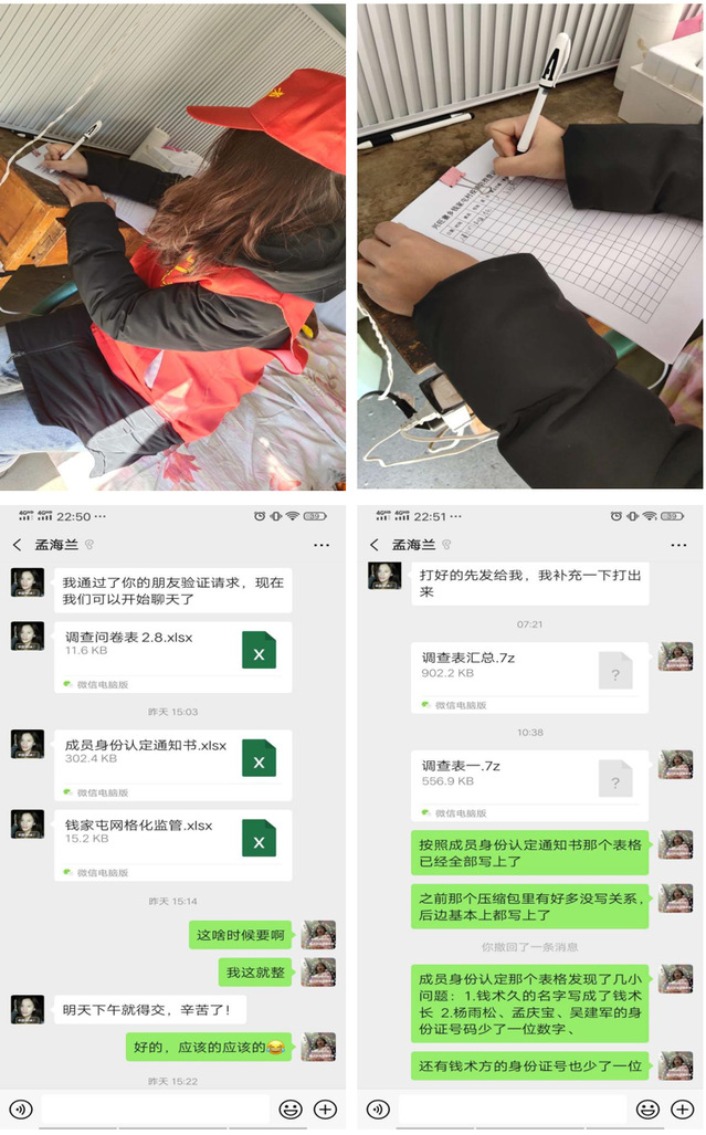 钱红丽同学,是河北省遵化市人,也是我校350vip葡京新集团生研水养第三党支部的一名党员。在看到新冠肺炎疫情大面积爆发的相关新闻后,非常想投身到抗疫前线中去贡献一份自己的力量。因此当知道本村的疫情防控志愿服务需要人手后,她第一时间报名参与其中。志愿服务工作主要包括两部分内容:一是在疫情防控调查点进行汇总,二是在防控点值班。为做好两项工作,钱红丽同学细心地将每家每户的调查表制作成为电子版,一一核对。同时在村口严防死守,严禁任何非紧急的不必要的出入,并做好特殊情况的进出做好消毒登记等工作。通过本次志愿服务活动,钱红丽同学表示,国家处于特殊时期,疫情防控重于泰山,生命安全高于一切,作为一名党员,不仅要紧跟国家号召,防护好自己和家人的安全,同时也要尽己所能更好地服务身边群众。