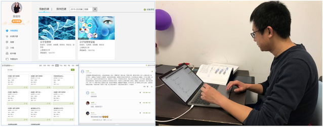 《分子生物学》课程由张俊玲、马克异、徐晓雁、陈良标、李名友和徐田军讲授,是一门多专业必修和选修的重要专业基础课,本学期开课8门次,其中的全英文课由鲍宝龙教授等多位老师承担。由于教学大纲的新修订,本学期更换了教材,讨论梳理了新的教学体系,课程内容较之前变化较大,又适逢疫情防控期间线上教学的紧急要求,课程负责人张俊玲教授积极组织团队教师分工合作,马克异、徐晓雁、李名友和张俊玲老师分章节完善修改了各章教学PPT、制作章节测验和学习要点、每周学习任务单,并精选在线视频,利用泛雅平台和建立微信群认真开展线上讨论与答疑,目前还在美国的陈良标教授也通过微信交流开课和线上课程的准备和建设工作,徐田军教授对教材选择和教学体系梳理给予了很好的建议,关键时刻方显团队力量。疫情防控期间,大家做不到面对面,但这种隔屏沟通、团结默契和精诚合作不仅为今后优秀教学团队的建设建立了良好基础,更实现了各门次课程间的资源共享。