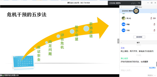 蔡雅琦博士从“一提到危机,首先想到什么?”引出话题,调动了辅导员老师们的热情和参与性。然后蔡老师分析了辅导员的角色定位和工作要求,指导辅导员如何认识危机、发现危机工作对象,叮嘱辅导员们平时工作中要注意了解学生,帮助学生建立心理支持系统或者让自己成为学生的心理支持系统。接下来,蔡老师非常详细地讲解了危机干预的实施,帮助辅导员们了解危机干预是一个系统工作,需要各部门和相关人员各司其职、共同协作。蔡老师特别提到了疫情居家期间,因为亲子关系问题导致学生可能出现心理危机,随后指导辅导员们进行心理危机的评估与处理应对。最后,辅导员们纷纷提出问题与蔡老师互动,蔡老师一一解答,辅导员老师们深受启发。