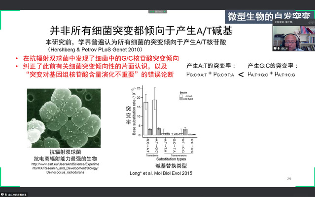 6月11日上午10点,应我校350vip葡京新集团邀请,中国海洋大学龙红岸教授为我校师生作了《微型生物的突变规律》专题讲座。由于受疫情影响,本次报告采取线上形式。共有八十余名师生参加本次讲座,报告由潘宏博副教授主持。