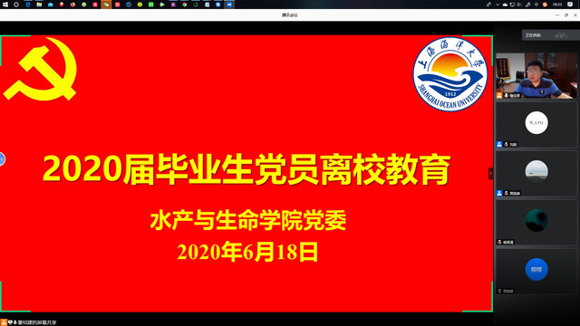 6月18日晚上,350vip葡京新集团在腾讯会议平台组织开展了2020届毕业生党员离校教育活动。学院党委书记黄旭雄,校党委组织部马红丽,学院全体毕业生党员、各支部书记、支委、发展对象和入党积极分子代表参加。会议由学院专职组织员董绍建主持。