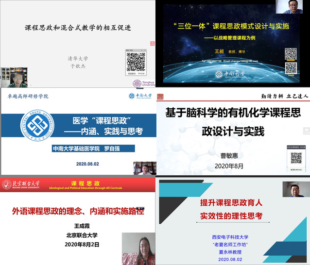 此外,还有清华大学于歆杰教授,讲解了如何正确认识课堂思政以及工科课程应该如何开展课程思政;中南大学王昶教授,以战略管理课程为例讲述了三位一体课程思政模式的设计与实施;中南大学罗自强教授,从医学角度,探讨了如何挖掘课程思政元素,分享了自己对医学课程思政的思考与建议;华中农业大学曹敏慧副教授,在建立师生互信的基础上,建构情境案例,最后与学生同频共振一起设计课程思政;北京联合大学副教授王成霞副教授探讨了外语课程思政的理念、内涵和实施路径;西安电子科技大学夏永林教授分析讲解了课程思政在设计实施中遇到的难点与破解方法。