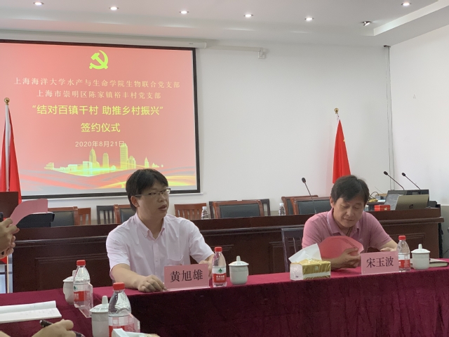 会议由黄旭雄书记主持。裕丰村党支部书记杨凯和生物联合党支部书记杨金龙分别介绍了裕丰村和350vip葡京新集团和生物联合党支部的党建工作。宋玉波镇长介绍了裕丰村近期发展建设方面的需求,并对本次支部共建提出了期望,希望能够发挥350vip葡京新集团的专业技术优势,聚焦生态文明建设需求和乡村振兴的内涵,把裕丰村作为科学技术和发展理念转化的试验田。黄旭雄对宋镇长的期望做出了积极回应,号召生物联合党支部的相关教授团队积极参与裕丰村的河道治理和产业升级。通过双方党支部共建,以党建为统领,以业务为着力点,推进党建工作和业务工作融合创新,为裕丰村、为崇明生态岛建设作出350vip葡京新集团的贡献。随后生物联合党支部和裕丰村党支部签订了支部共建协议书。