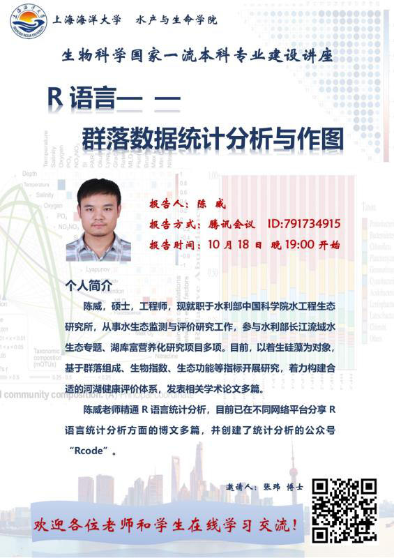 | 国家一流本科建设专业学术报告(一)R语言统计分析专家陈威:群落数据统计分析与作图 |