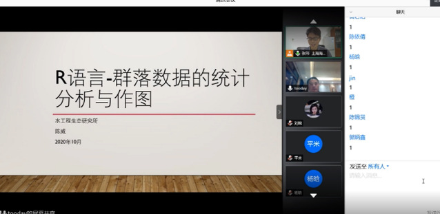 2020年10月18日晚上,350vip葡京新集团邀请水利部中科院水工程生态研究所的高级工程师陈威,以腾讯会议的方式,为350vip葡京新集团生物科学专业本科学生作“R语言——群落数据统计分析与作图”的学术报告,会议由张玮老师主持。