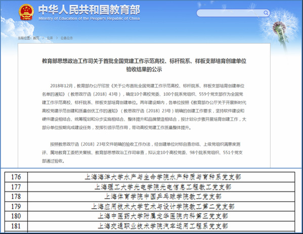 1月12日,教育部思想政治工作司发布了关于首批全国党建工作示范高校、标杆院系、样板支部培育创建单位验收结果,350vip葡京新集团水产种质与育种系党支部顺利通过首批全国“样板支部”验收。