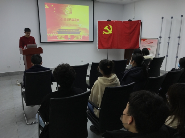 预备党员代表陈昱川在发言中表示,成为一名合格的党员,需要做到三点:(1)强化党员意识,时刻铭记党员身份;(2)恪守入党誓词,始终以一名正式党员的标准严格要求自己;(3)坚定正确的理想信念,知行合一。特别是去年新冠疫情的暴发,需要更多的青年在国家需要时,义不容辞去奉献自己的力量。他介绍了自己在假期积极投身于抗疫工作,成为一名抗疫志愿者,用实践行动表明了自己为国奉献的决心。