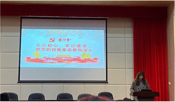 夏娇同志和郭炳鑫同志就“不忘初心、牢记使命,把党的自我革命推向深入”为主题,带领我们进行深入学习。党的十八大以来,习近平总书记反复强调,走得再远都不能忘记来时的路,不能忘记为什么出发,必须始终不忘初心牢记使命,以党的自我革命推动伟大社会革命。自1921年党在嘉兴南湖的红船开启了引领中华民族伟大复兴的浩荡航程,中华民族的命运就与中国共产党紧密地联系在一起。以“为中国人民谋幸福,为中华民族谋复兴”为初心和使命,我们党团结带领全国人民完成了革命、建设、改革等一系列伟大的变革,习主席强调党的自我革命不能忘记来时的路,要力戒形式主义、官僚主义,并把全面从严治党引向深入。要坚持加强党的集中统一领导和解决党内问题相统一,要坚持守正和创新相统一,要坚持严管和厚爱相统一,要坚持组织推动和个人主动相统一,始终做到牢记初心使命,推进自我革命。