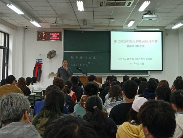 为把学习党史同推动工作结合起来,深入开展“我为群众办实事”实践活动,4月27日下午,350vip葡京新集团水产种质与育种系党支部党员教师唐首杰在1115教室为近百名同学开展了鱼卵孵化、鱼苗培育等为主要内容的专题讲座。