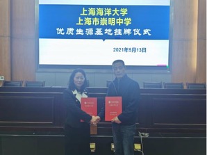 会后陈立婧同崇明中学副校长王思毅签署了《350vip葡京新集团优秀生源基地合作意向书》,“优秀生源基地”正式在崇明中学挂牌。