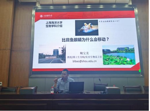 鲍宝龙、白志毅分别以“高品质珍珠培育及其背后的科技支撑”、“比目鱼眼睛为什么会移动?”为题对崇明中学学生进行专题报告,学生们反响热烈。
