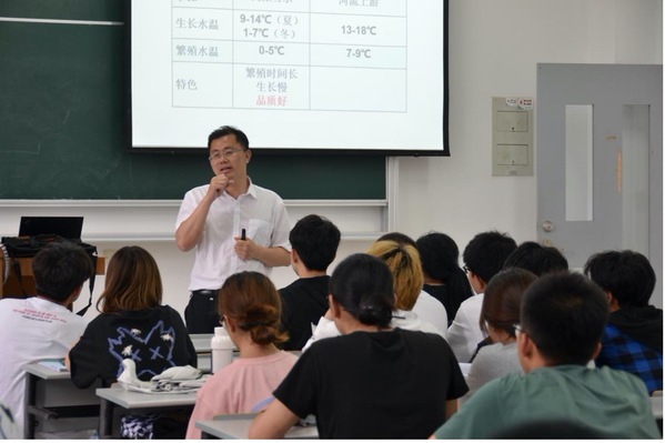 而后,王成辉用一个个生动的小故事向学生介绍了自己在新疆、西藏等地的科研经历。特别是他在西藏亚东如何攻克亚东鲑鱼的育种和繁殖难题:一是建设施,建造繁育基地与种鱼基地;二是育人才,实现“牧民”转变成“渔民”,将技术传授给当地农民实现授人以鱼、不如授人以渔;三是攻技术,初步掌握了亚东鲑鱼的培育与孵化等技术;四是出影响,项目已在西藏与社会上产生了广泛的影响,被央视、教育电视台等多家媒体报道;五是助脱贫,帮助当地居民增收增产,实现了“一条鱼带动了三乡镇156户442人脱贫”;六是产效益,形成了从科研繁育到市场增收的转变,形成当地特色支柱产业。