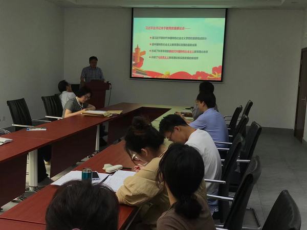 党委宣传委员、副院长陈再忠带领大家再次学习了习近平关于教育的重要论述,陈老师从习近平总书记关于教育事业发展的根本保证、基本任务、总体部署、战略举措等方面的论述,带领大家学习党的教育方针和办学方向等重要内容。陈老师强调,习近平总书记关于教育的重要论述,传承了中华优秀传统教育思想,借鉴了当今世界优秀教育成果,总结了我们党领导教育工作的历史经验,是党的创新理论的重要组成部分,是推动我国教育事业改革发展的根本遵循。作为教育工作者,要全面学习把握习近平总书记关于教育的重要论述的科学内涵和精神实质,更好地武装头脑、指导实践、推动工作。