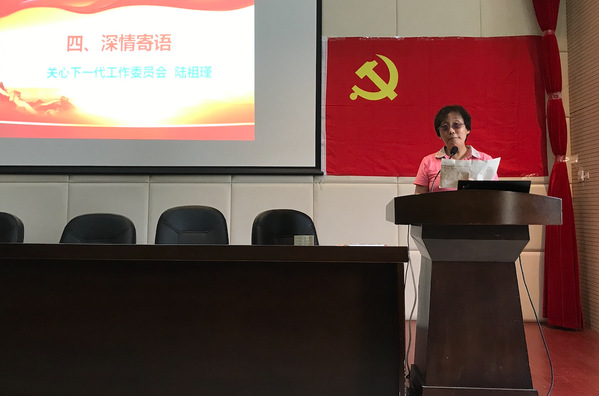 关心下一代工作委员会陆祖瑾为同学们送上临别祝福。陆老师希望生活在新时代的青年党员们能常怀感恩之心,用自己的才智和学识将书本中学到的知识和本领运用到实践中去,敢于面对更多的困难与挑战。深刻理解“一分耕耘,一分收获”这句话的意义所在,在今后的工作岗位上,踏踏实实工作,本本分分做人。不忘初心,牢记使命,不懈奋斗,坚定思想与信念,将个人的梦想与国家、民族紧密结合,做一名合格的社会主义建设者和接班人。