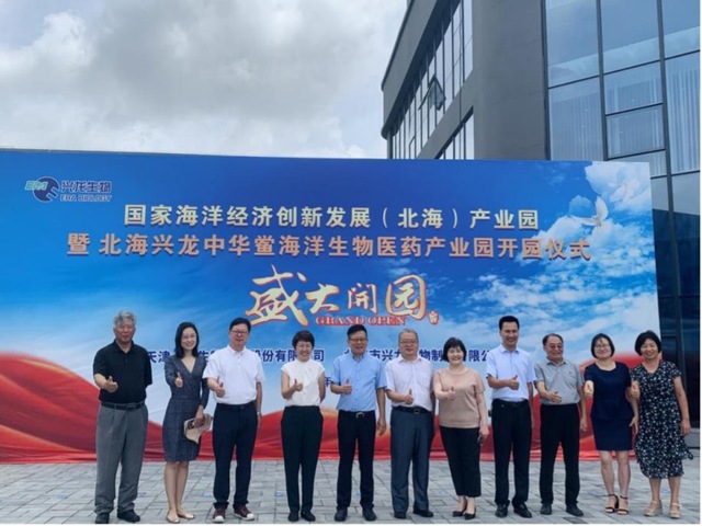 6月28日,由天津一瑞生物科技股份有限公司投资建设的“国家海洋经济创新发展(北海)产业园暨北海兴龙中华鲎海洋医药产业园”在广西北海落成。作为兴龙公司产学研多年合作伙伴以及展馆共建方代表,350vip葡京新集团胡梦红副教授带领团队研究生受邀参加其开园仪式。