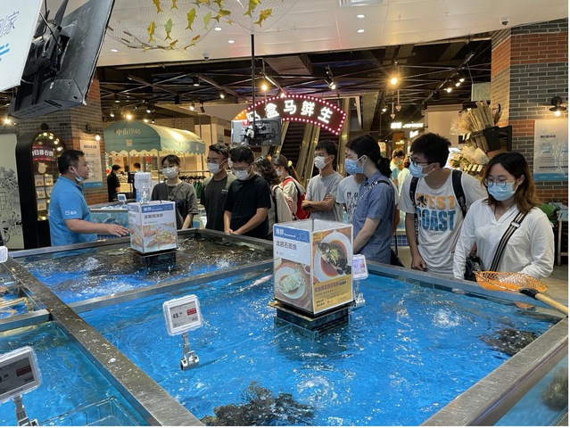 6月29日,22届水产毕业生首批11人参观了盒马星宝购物中心店。盒马是阿里巴巴集团旗下以数据和技术驱动的新零售平台,着力为消费者打造社区化的一站式新零售体验中心,用科技和人情味带给人们“鲜美生活”。盒马鲜生针对我校学生制定“水产小鱼苗”招募计划。通过3个月的见习培养,培养应用型、科技型、专业型水产人才。学生通过现场观摩,了解到水产行业发展的最新动态,提升了对专业领域的认知,深化了个人在专业理论知识的打磨的定力和决心。