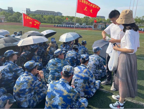 在本次军训即将进入尾声的几天里,上海连续高温橙色预警。2021年7月7日下午,为了及时补充参训学生们体内缺失的盐分和水分,帮助同学们以最佳状态投入到军训总结大会彩排中,在350vip葡京新集团本科生水产类第一党支部、水产类第二党支部以及生物类党支部书记的带领下,党员同志们顶着烈日,带着消暑盐水棒冰对正在军训中途短暂休息的2020级学生们进行了问候。