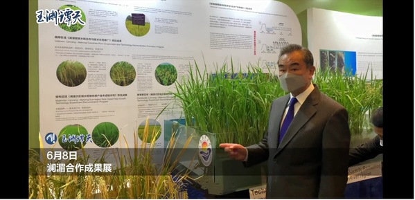 外交部王毅部长莅临学校澜湄稻渔成果展台,了解项目进展(引自玉渊谭天公众号)