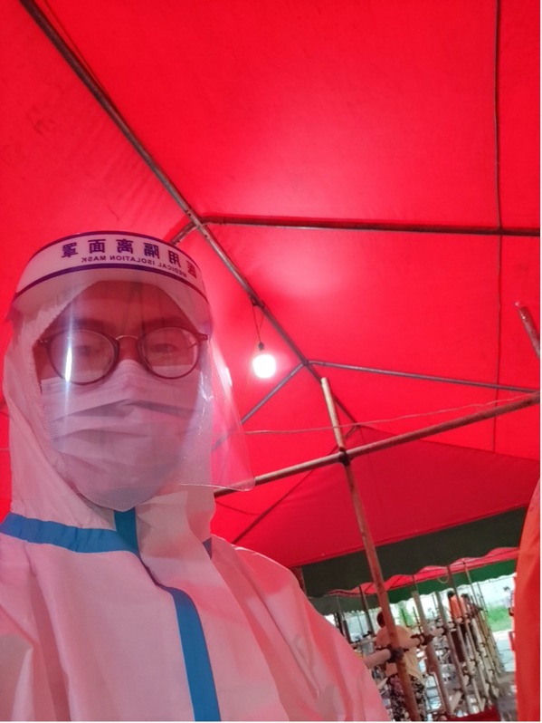 杨钊同学在核酸检测现场工作照片