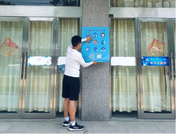 8月1日是杨钊同学上岗的第一天。早上八点,他前往浦头镇政府报到。所有志愿者在此接受了“常住人口信息摸排”和“核酸检测情况统计”两项工作的培训。完成培训后,该同学前往浦东村的核酸检测点参加相关演练,之后跟随镇团委李涛到镇工业园的部分企业进行情况摸排、分发并张贴疫情防控宣传海报等工作。之后,杨钊同学跟随镇团委相关负责人白天在镇上多个人流密集的场所走访调查,对存在的实际困难和问题共同商讨对策;晚上,则开展相关场所防疫情况调查,了解了高速路口的封闭情况、承仪村核酸检测场所的准备情况、东部各村与泰州交界卡口的封闭情况。