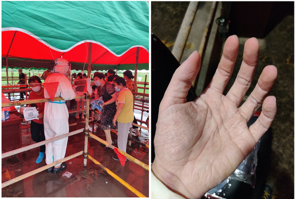 8月3日,由于所在地承仪村核酸检测人员不足,杨钊同学被分配去该村进行支援。早上十点,所有志愿者集合完毕,进行前期的统计和培训准备工作。在进行分组时,包括杨钊在内的九名男生志愿者主动承担了核酸检测登记员的工作。下午一点,他们到采样点进行准备工作;两点整,江都区统一开始全民核酸检测。在检测刚开始的时候,由于人数众多加之部分群众不了解情况,出现了短暂的拥挤现象。志愿者和工作人员积极解释并维护现场秩序,检测现场秩序逐渐好转。最终在大家的共同努力下,该村的核酸检测任务顺利完成。