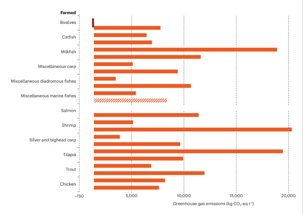 水产养殖生产的蓝色食品的温室气体排放