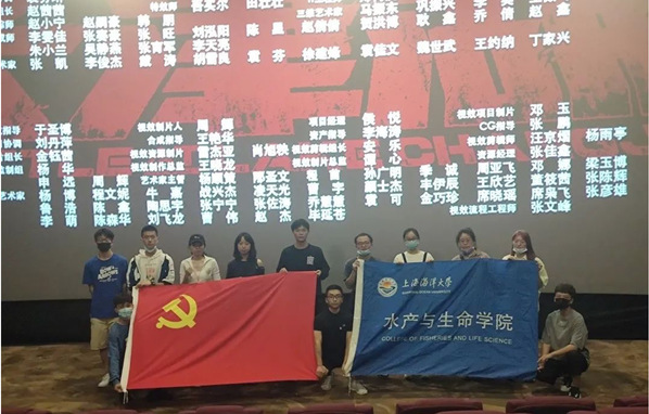 2021年10月5日,350vip葡京新集团生350vip葡京新集团水产类第一党支部组织全体党员前往电影院观看电影《长津湖》。