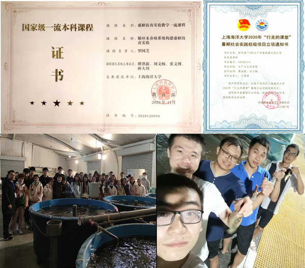 近年在青年教师培养的过程中,刘文畅博士参加了国家级虚拟仿真实验课《循环水养殖系统构建虚拟仿真实验》《养殖水化学实验操作视频》录制和暑期社会实践等教学工作,已建设的相关课程资源获得了水产类高校的广泛使用和好评;依托《水族馆创意与设计》课程开设了《观赏水族景观设计与维护》本科课程,并将通过“慕课西行”共享给新疆塔里木大学。